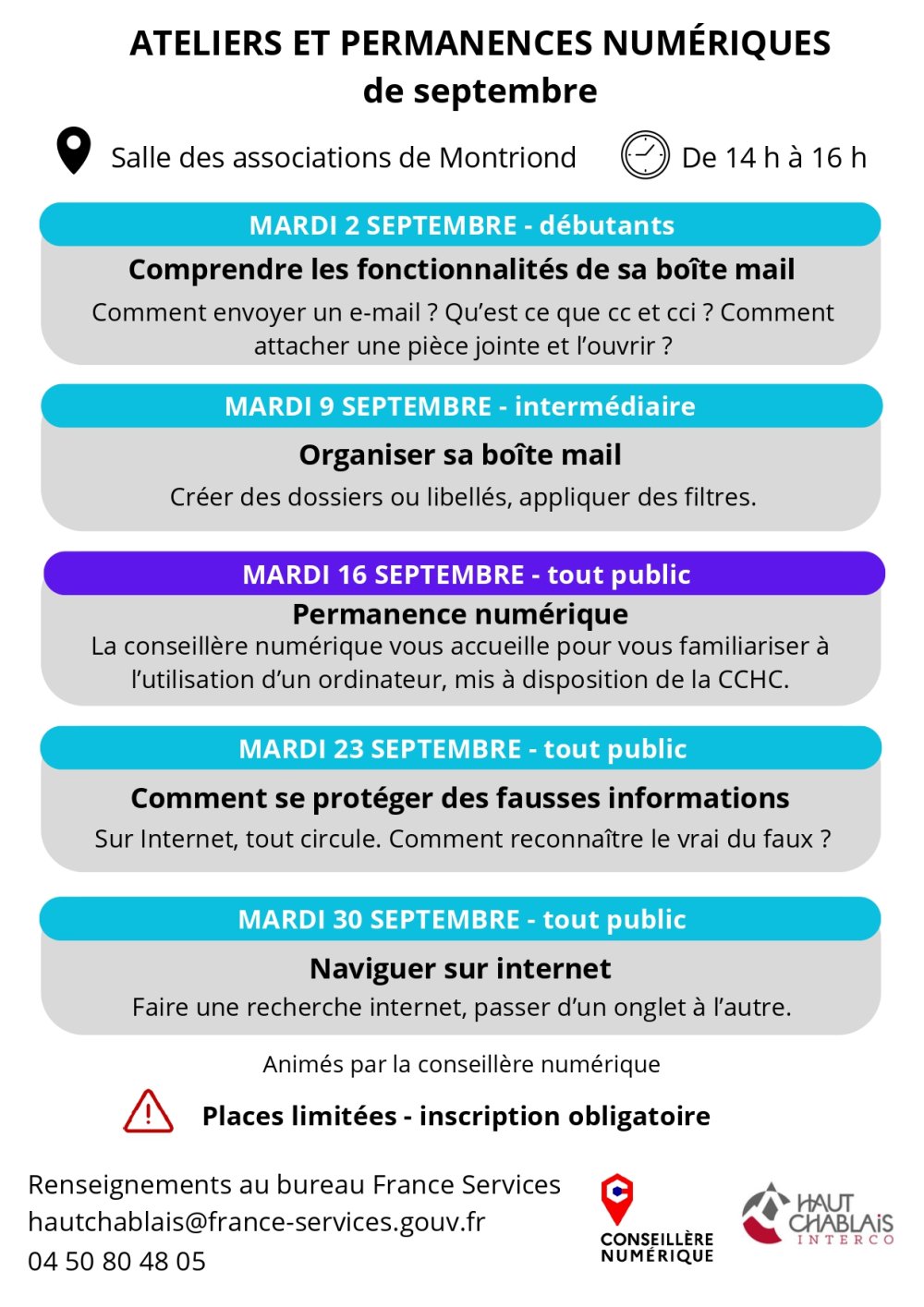 Zoom sur les ateliers et permanences numériques organisés et animés par la Conseillère Numérique de la CCHC pour le mois de septembre 2025.