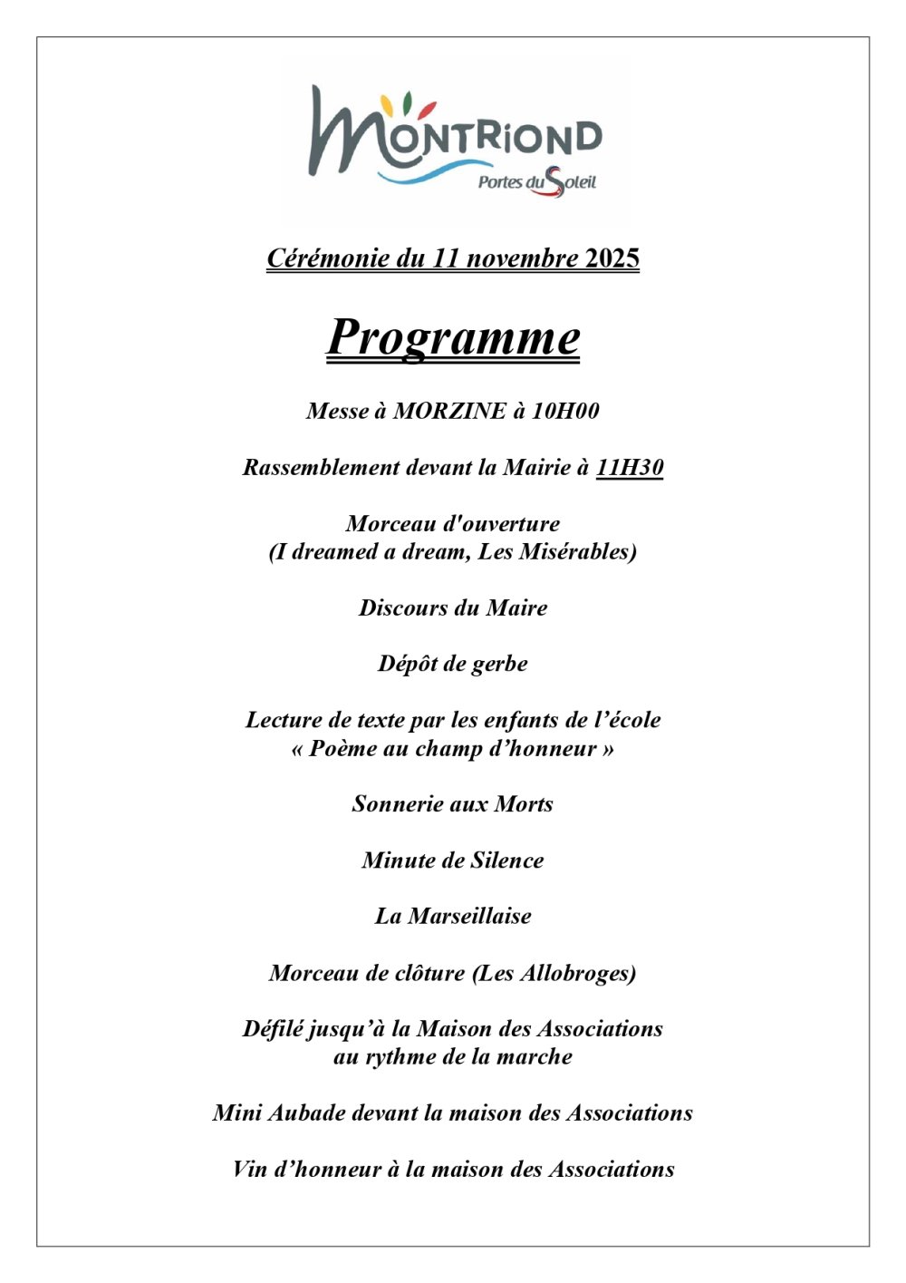 La municipalité vous invite à participer à la commémoration de l’Armistice du 11 novembre 1918, en hommage à tous les soldats morts pour la France.